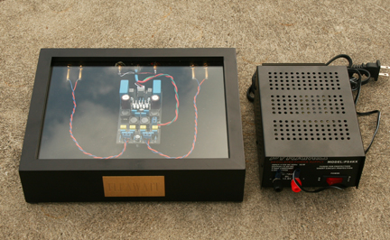 Dual TPA3116D2 amplifiers handle the power and are handed off the audio signal by a Teradak brand Vishay precision resistor stepped attenuator volume control. There are only two 1% tolerance Vishay resistors in the signal path before hitting the circuit board. The amp is wired with plenum grade Cat5e (teflon insulated) & shielded copper cable. Solid brass, vintage look toggle style power switches, gold plated, solid metal binding posts, gold plated RCA's, 3M elastomer vibration isolation pads and a textured black enamel round out the aesthetics. Individual power supplies can be used for each section or a single, 10amp or better single supply with two power cord leads.